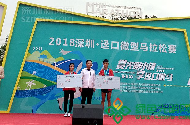 光明新区党工委书记王宏彬为获得第一名的跑者颁奖。